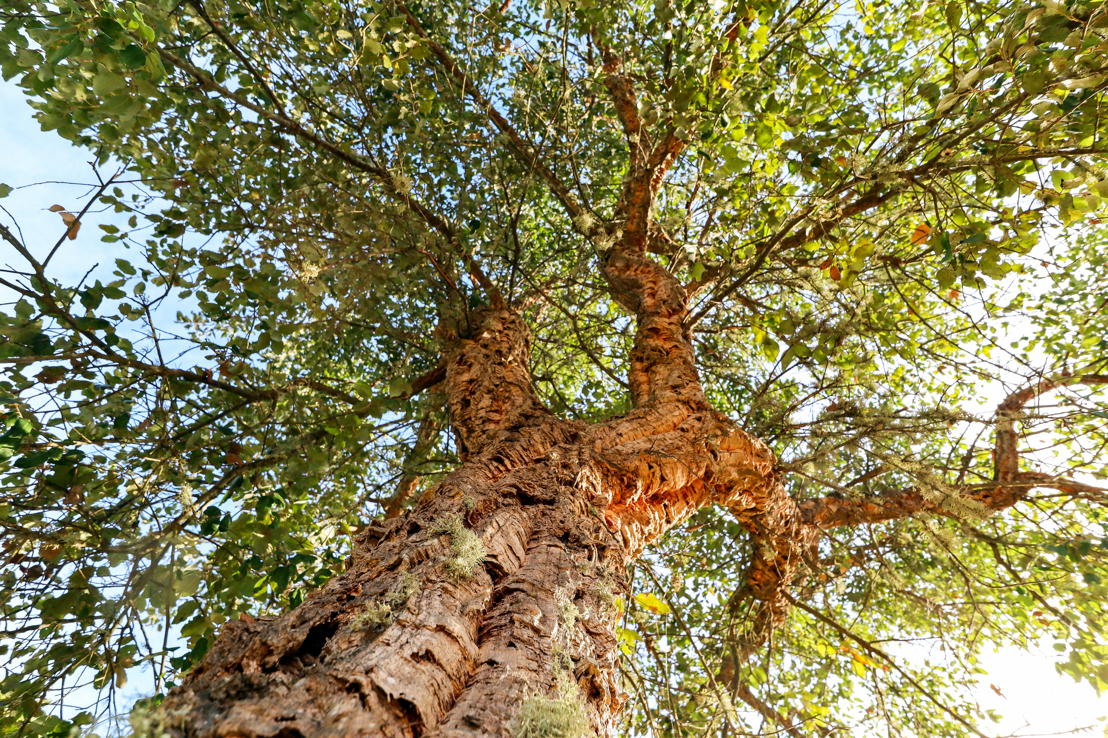 Portuguese cork is harvested from a tree an average of every 9 years or so, using one simple hand tool, after which the tree begins to absorb lot of CO2, (so good for humans!), and begins growing a new layer of cork!
