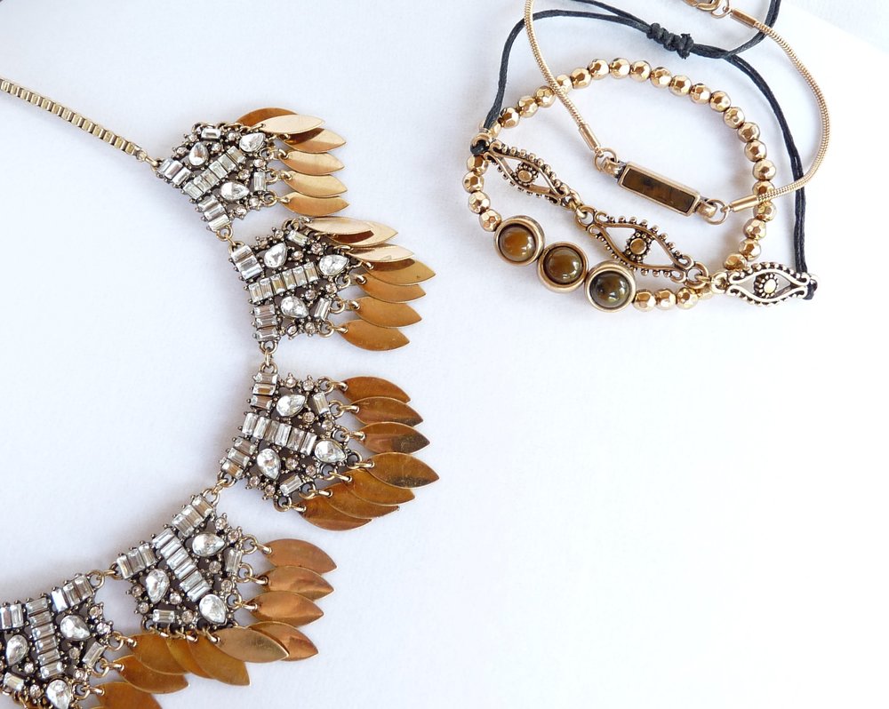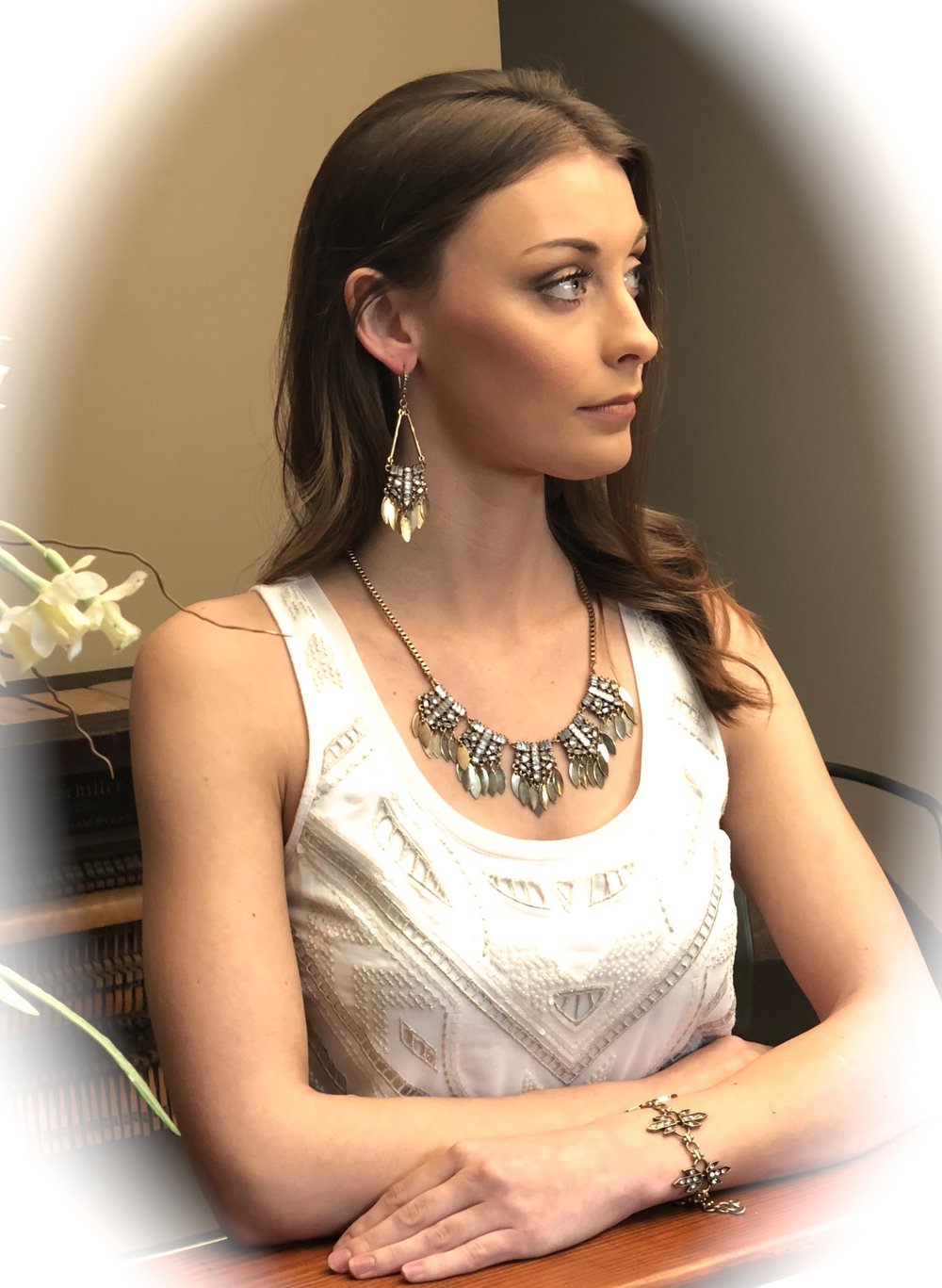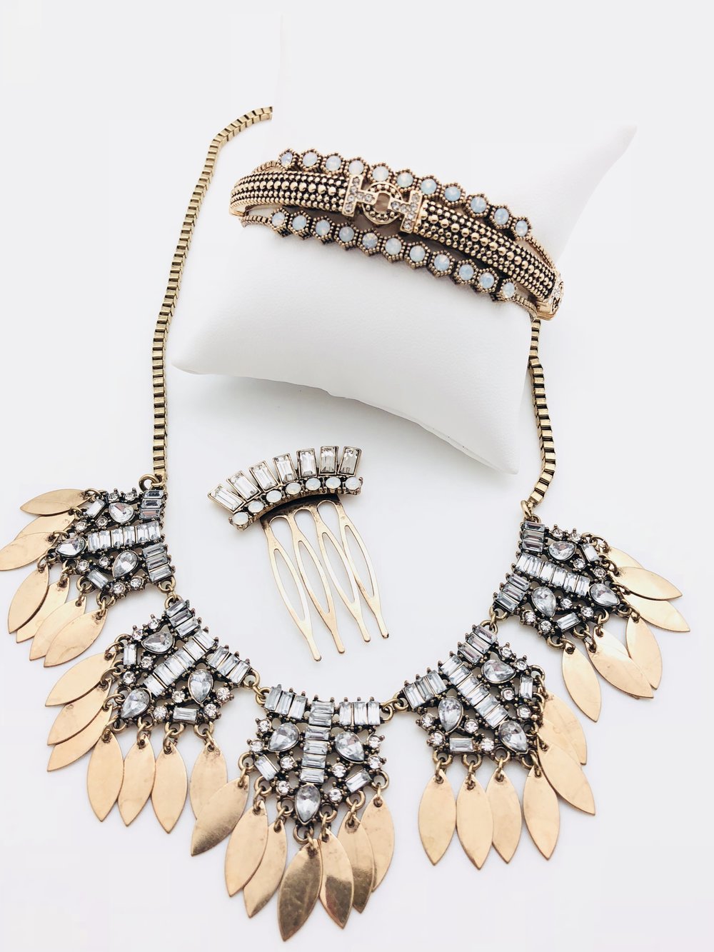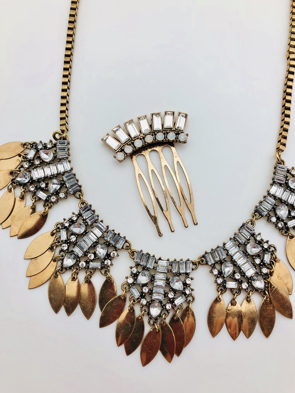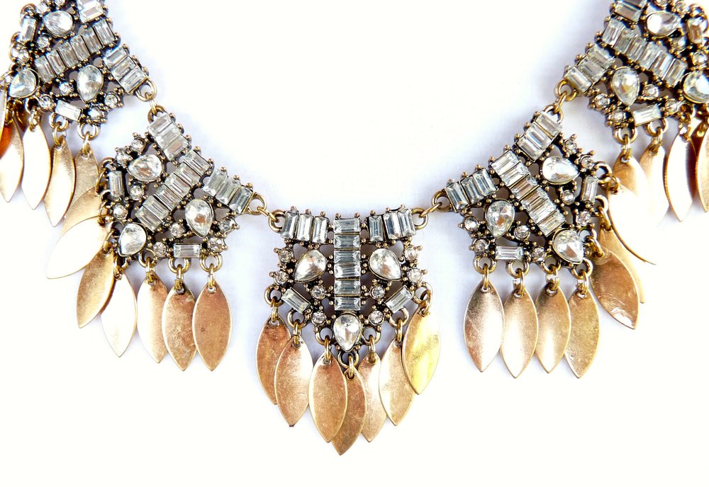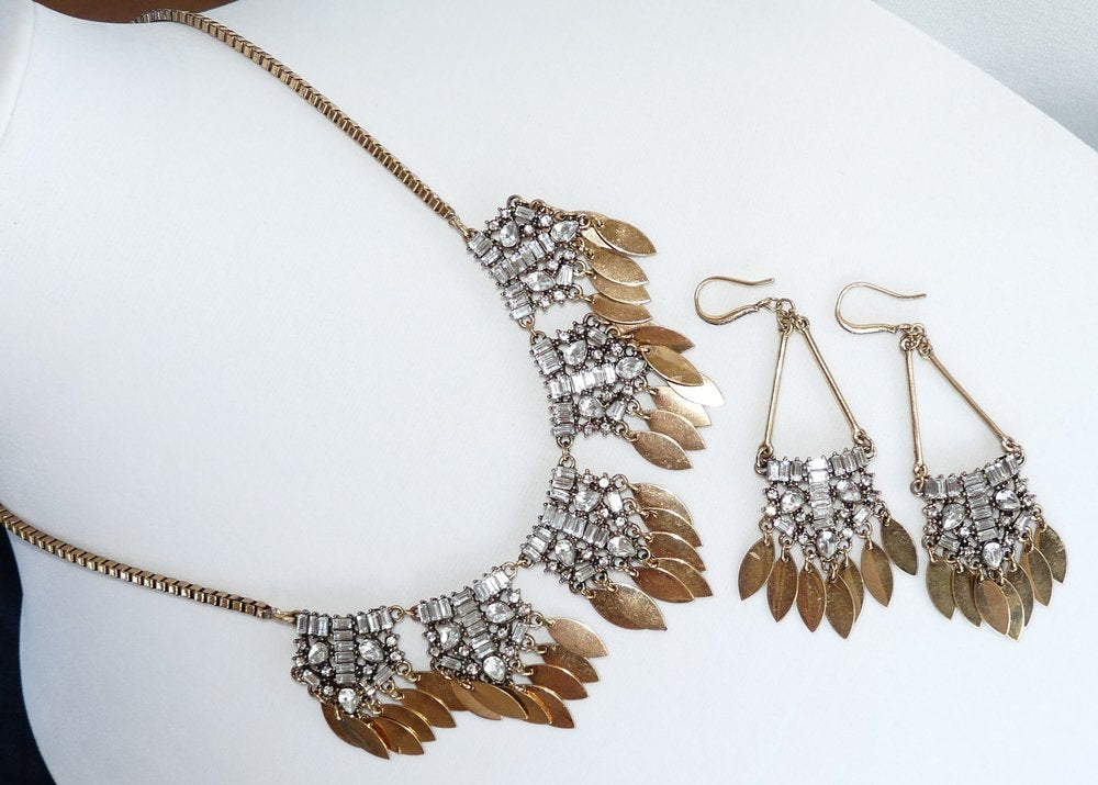 Nickel Free. 18" (plus extension) worn gold box chain holds clusters of bling and tinkling, moving, leaf shaped charms. It can definitely be dressed up, but it's also very jean/little jacket friendly! Add the Alisha earrings for a real statement.