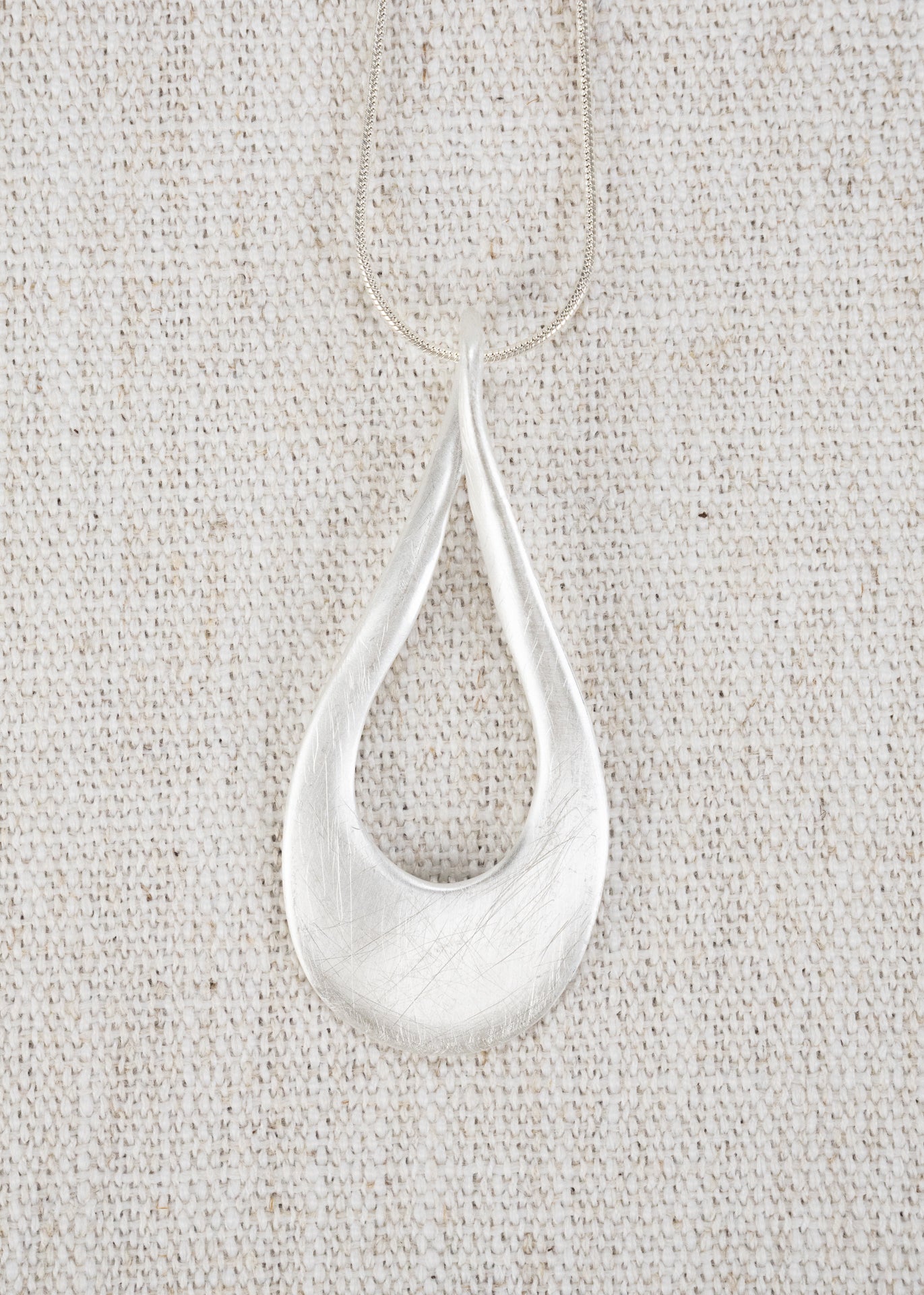 Gold or silver! We have them both! 3" pendant hangs on a 31-34" fine snake chain. See our mix and match earrings on the earring page.