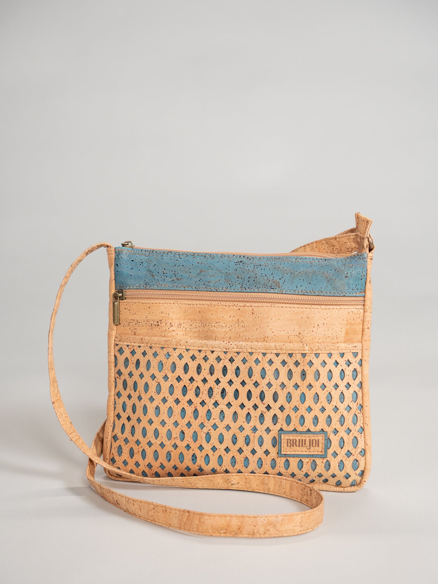 Danica laser is popular for the front slide-in pocket making it oh so easy to reach your phone or drop it in! In a crowd or where you need a little more security? Back zipper pocket still easily accessible. Another front zipper pocket gives you plenty of spots to keep all your treasures. Main inside compartment has back zipper pocket and front cork pocket. Appx 8.5x9.5” . Great medium sized purse! Adjustable shoulder strap.