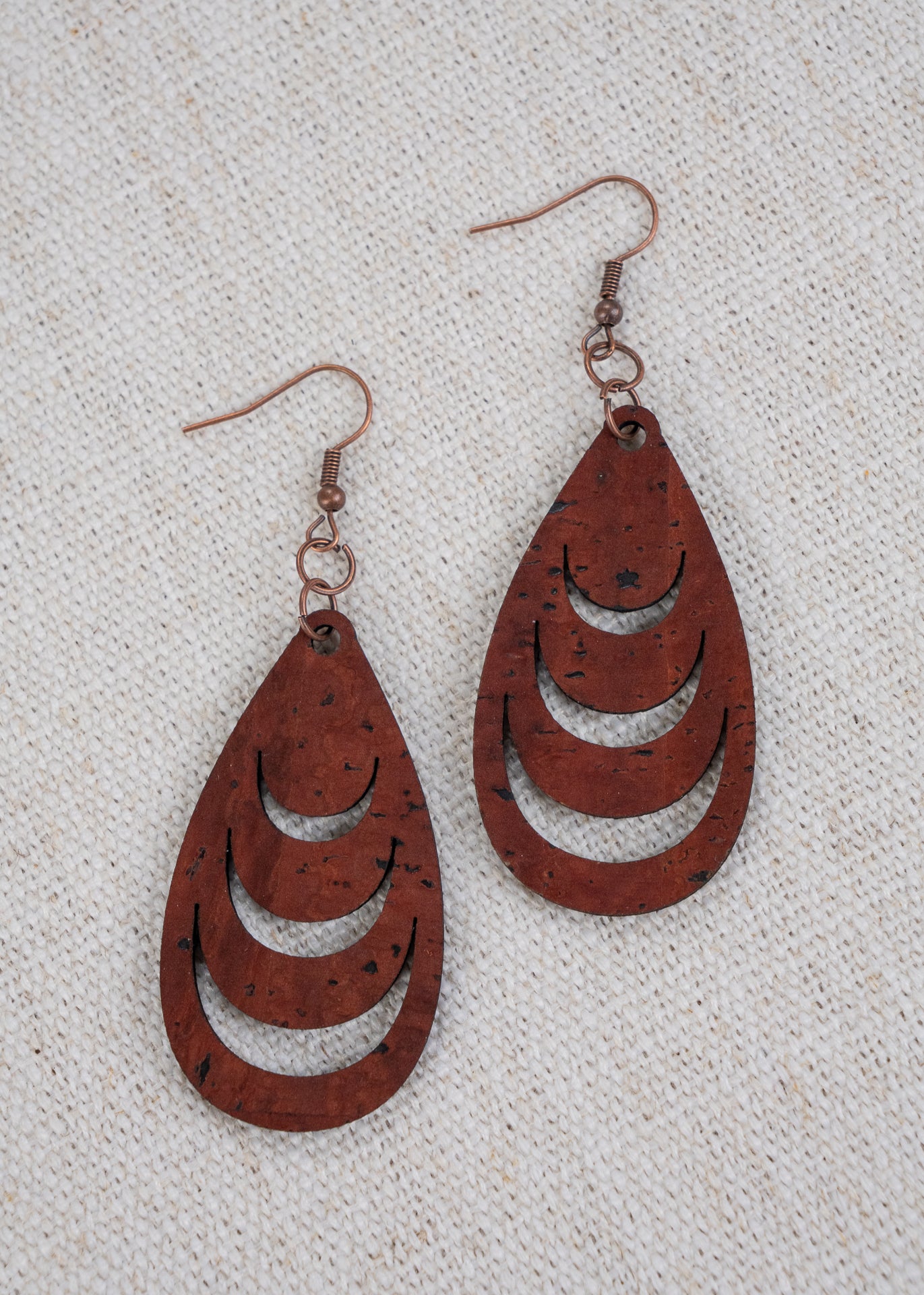Flynn, laser cut design, 2" earring that hangs almost 3" with hook. Shepherd hook is copper, NICKEL FREE.