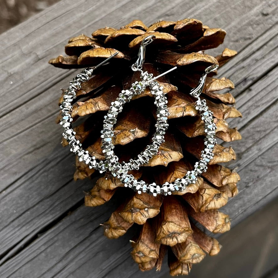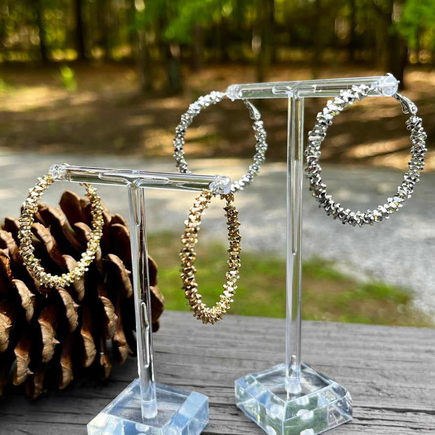 Sometimes we want a little extra glitz to our hoop... Enter Silver Tinsel with a "nugget" look.
