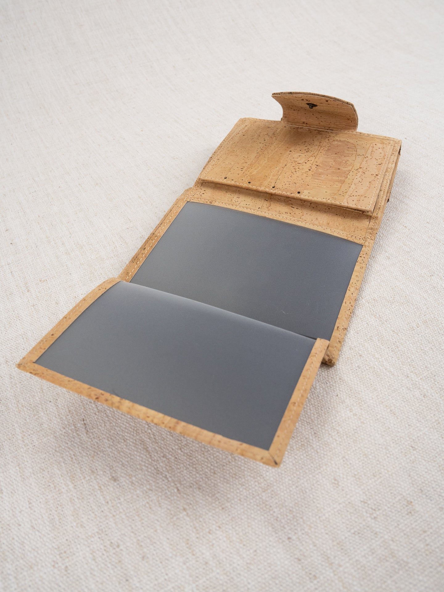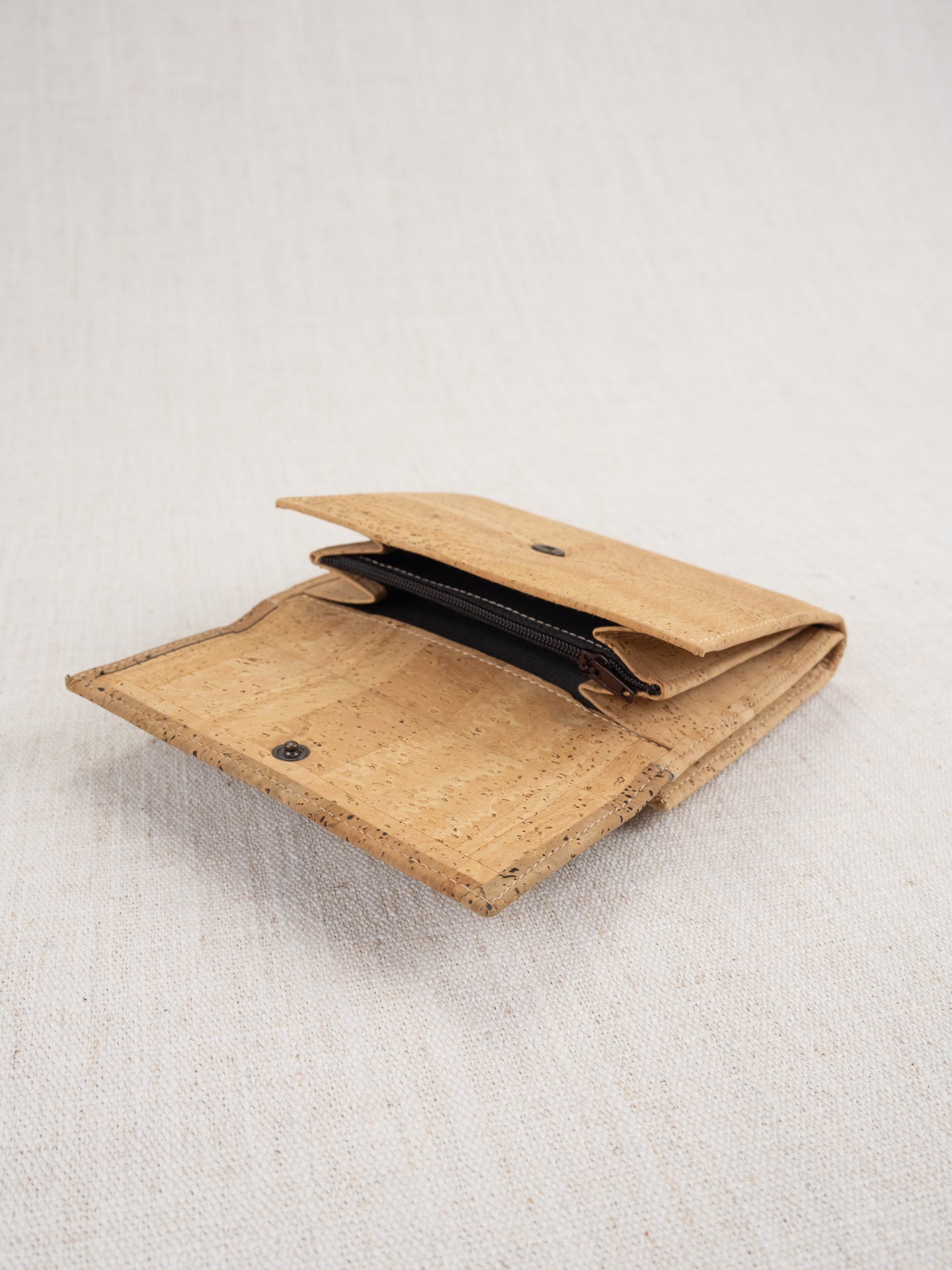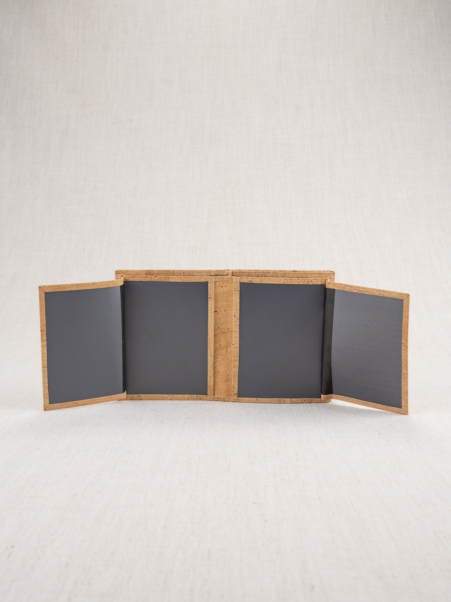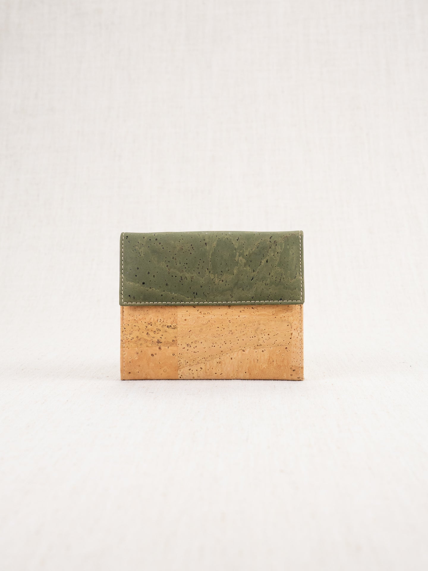 Measuring 5.25x4.3", the Small Clara is the little sister to the Clara. It still boasts 8 credit card slots, 4 window compartments, one larger compartment for bills, and the coin side with a zippered compartment and room on either side. As are all our cork products, beautifully vegan and renewable!