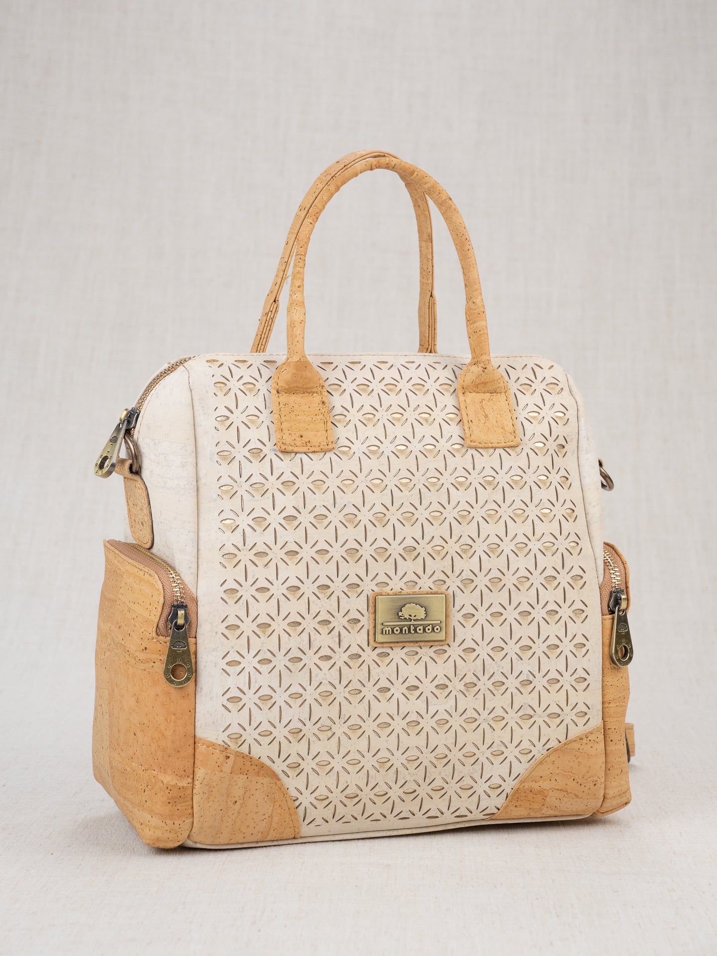 Top shelf quality and detail! Angelina - with laser design, side zippered pockets, and the ability to be a backpack purse, a shoulder bag or a hand bag. (Convertible strap) Extra detail with "feet" to help keep the bottom clean. Nice size, measuring 11.5"x9.5"x5. Inside zippered pocket and inside drop in pocket.