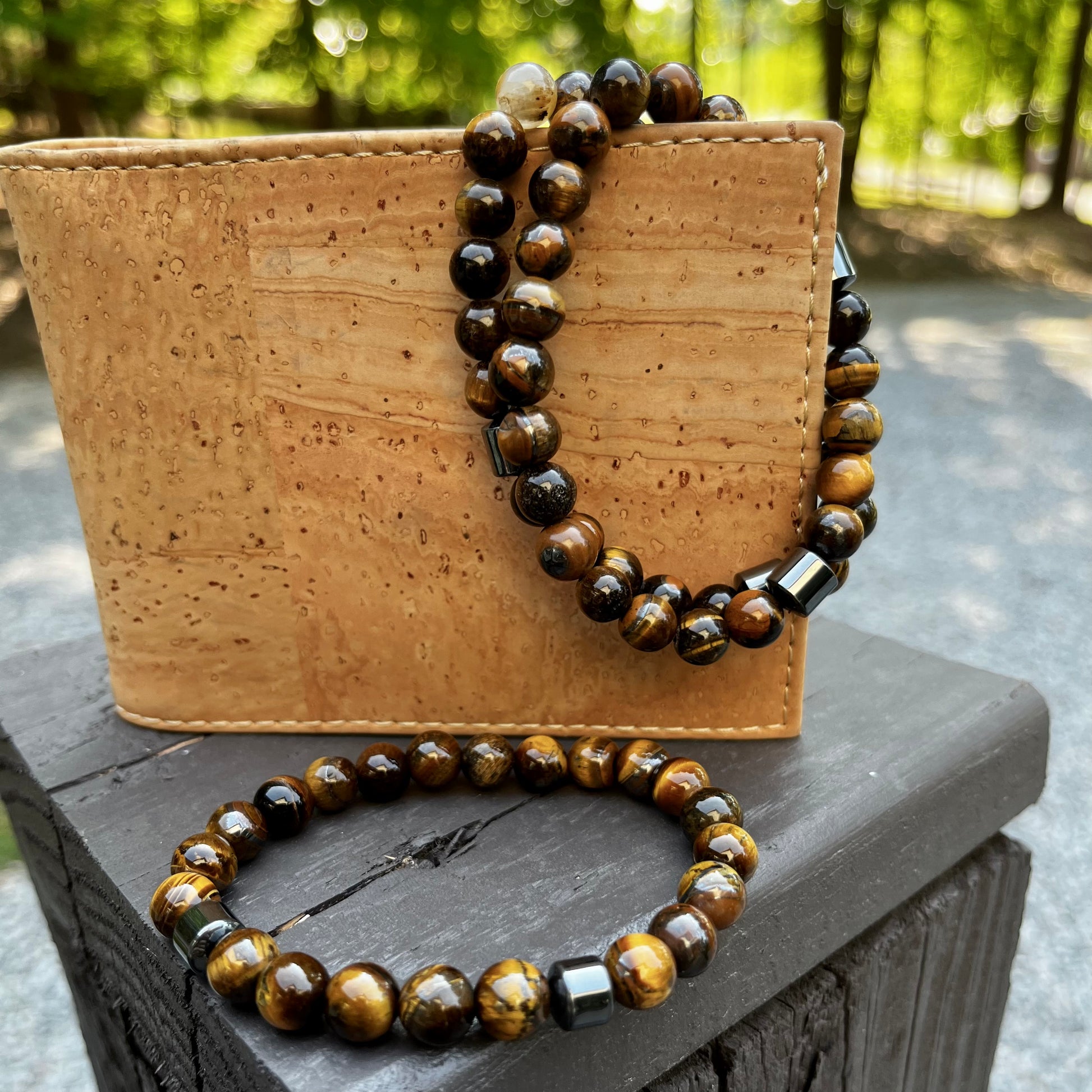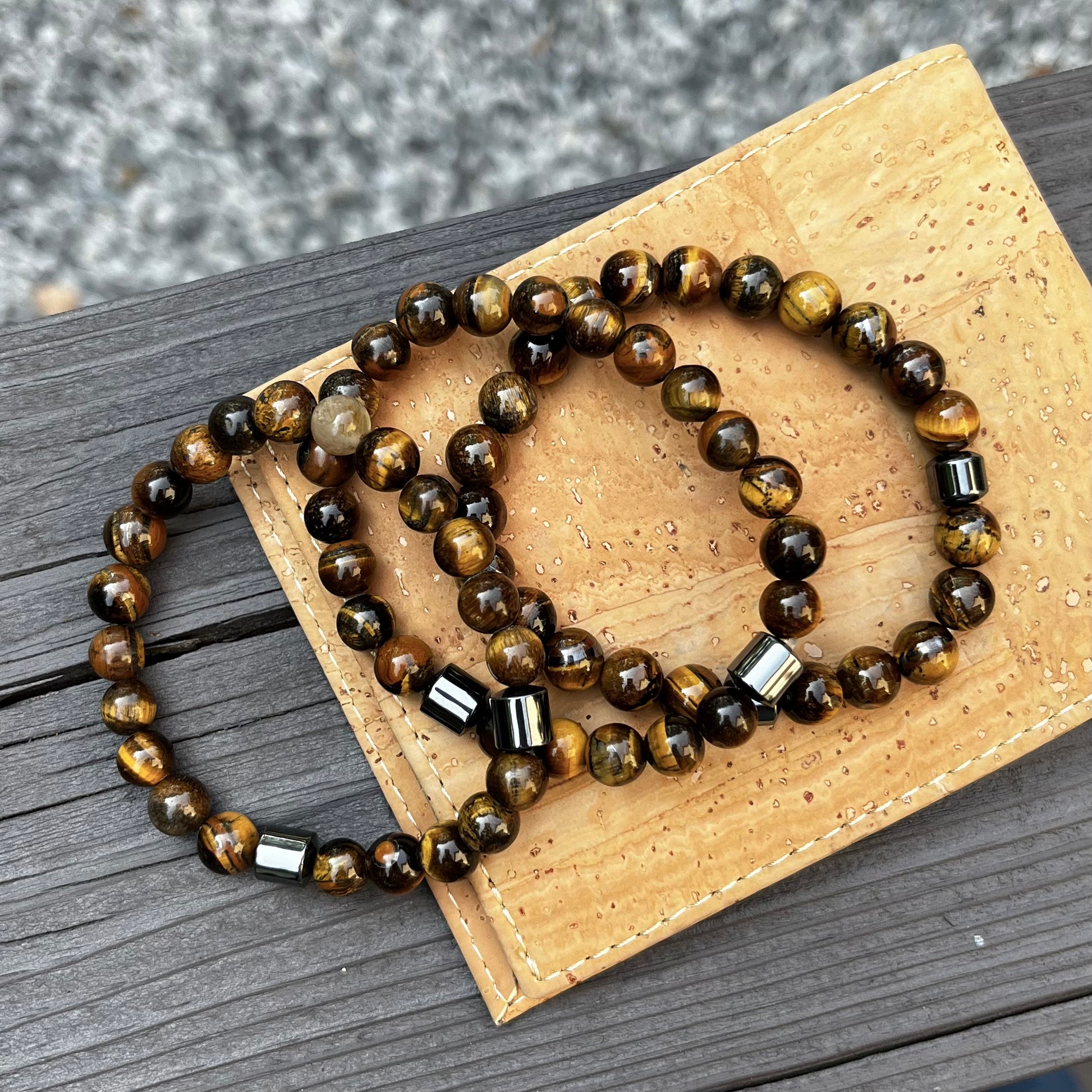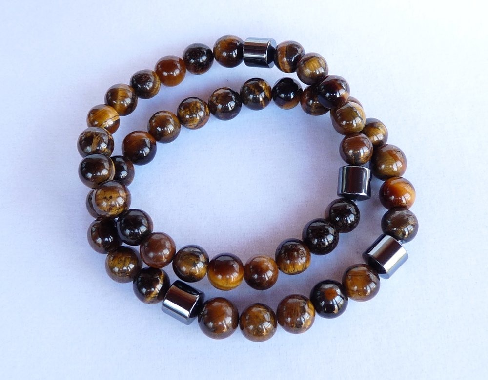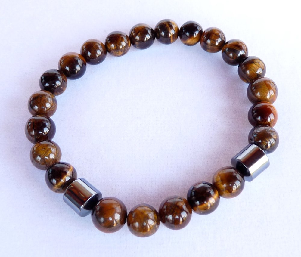 Men's semi-precious stone bracelets. Stretch. Choose from smooth brown or matte black with a small stretch of brown for contrast. This IS a man's bracelet, (though anyone can wear it!), but fits wrist only up to 7 1/2".